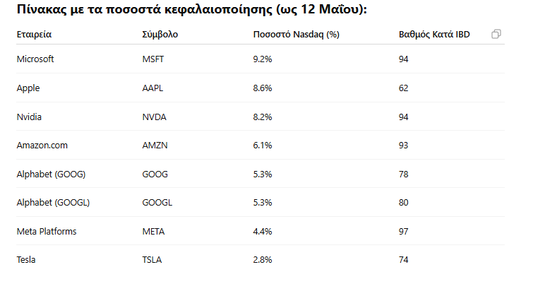 Η Microsoft κατέχει πλέον το 9,2% του συνολικού βάρους της Nasdaq, σε σχέση με την Apple που έχει υποχωρήσει στο 8,6%. Η Nvidia ακολουθεί με 8,2%, σημειώνοντας σημαντική ανάκαμψη μετά από επιβράδυνση στην αρχή του έτους.