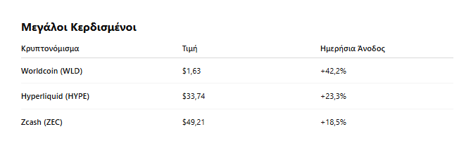 Οι αγορές κρυπτονομισμάτων κινούνται ισχυρά ανοδικά, με τους θεσμικούς επενδυτές και τις ροές κεφαλαίων σε ETF να αποτελούν τους βασικούς μοχλούς ανόδου. Παράλληλα, η περιορισμένη συμμετοχή του λιανικού επενδυτικού κοινού θεωρείται στοιχείο που αφήνει περιθώριο για περαιτέρω ενίσχυση της αγοράς.